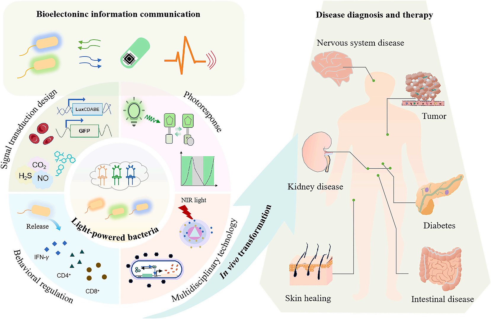 二、关键词:半导体合成生物学、半导体光遗传学、光学生物电子接口、"菌-机"接口、智能感知、肠道菌传感器、肠道电子胶囊、工程菌细胞工厂