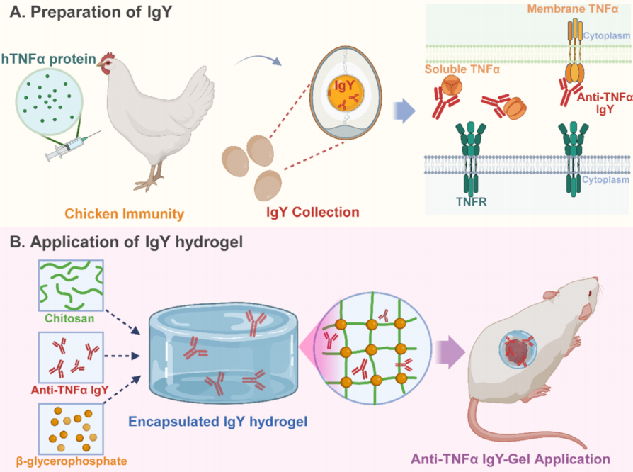 149)Guijie Bai, Xiaoxuan Yin, Yaxin Ning, Yanning Zhang, Yue Jiang, Dawei Sun, Yaxin Wang, Binglin Ma, Duo Liu,* Peiyuan Liu,* Hanjie Wang*. Sustained TNFα Suppression and Enhanced Cutaneous Healing via Topical IgY Hydrogel Therapy in Inflammatory Skin Disorders. ACS Applied Materials & Interfaces, 2025, https://doi.org/10.1021/acsami.5c06745.