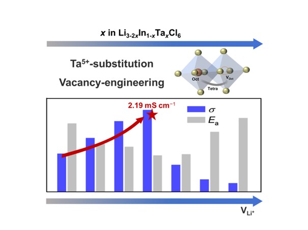 一、提出了通过空位工程调控氯化物固态电解质结构中锂离子空位的方法,合理阐释了基于空位工程设计高电导率固态电解质的策略。