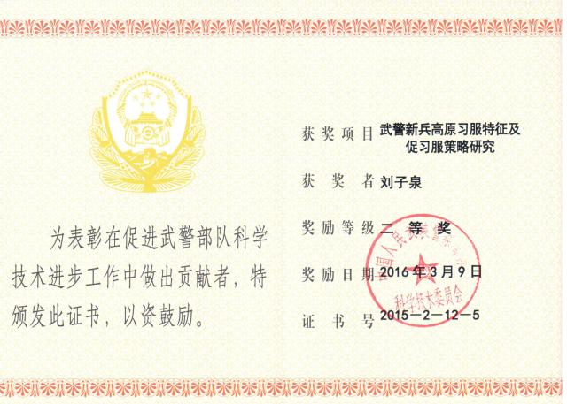 Title of Achievement:武警新兵高原习服特征及促习服策略研究