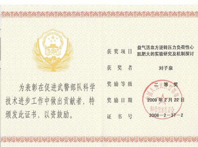 Title of Achievement:益气活血方逆转压力负荷性心肌肥大的实验研究及机制探讨