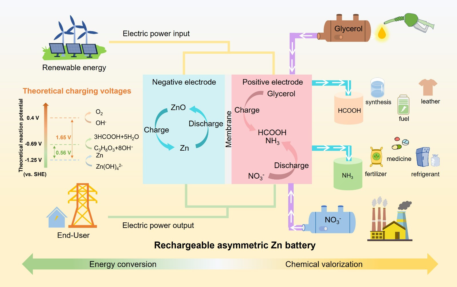 其成果以题为“Rechargeable Asymmetric Zinc–Nitrate/Glycerol Batteries Synergizing Chemical Valorization and Energy Conversion”在国际知名期刊EES Batteries上发表。