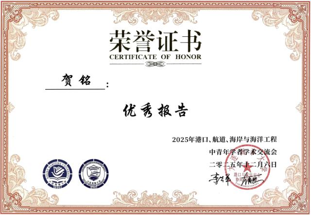 Outstanding Presentation Award at the 2025 Conference for Early-Career and Mid-Career Scholars in Port, Waterway, Coastal, and Ocean Engineering, 2025.12